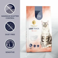 Ever Clean Litterfree Paws är en kattsand av högsta kvalitet med svag doft av parfym som aktiveras vid kontakt med fukt. Litterfree Paws kattsand har större korn än de övriga sorterna, och lämpar sig därför extra bra för långhårs katter och kattungar. Kattsanden har maximal klumpbildningsförmåga, vilket förhindrar urinen från att tränga sig igenom och lägga sig på botten av lådan där det bildas bakterier som gör att det börjar lukta. Kattsandens alla korn innehåller aktivt kol, vilket bidrar till att fånga upp och neutralisera de molekyler som orsakar dålig lukt. Kattsanden innehåller endast naturliga mineraler och lera, bland annat bentonitlera och ett antimikrobiellt ämne som tillsätts för att förhindra tillväxten av odörorsakande bakterier.