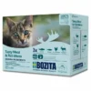 Detta läckra våtfoder är i form av läckra bitar i gelé – en storfavorit hos många katter! Detta multipack innehåller 12 påsar med 4 härliga smaker från både land och hav.