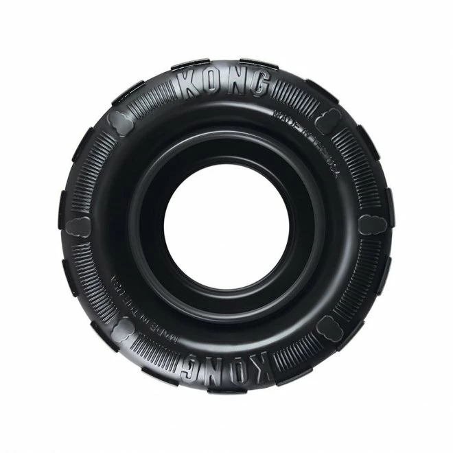 Detta bildäck i gummi är slitstarkt och både rullar och studsar. Dessutom kan du fylla det med godsaker för att göra leken extra kul. Stoppa in små godisbitar eller varför inte spruta lite pasta från Kong i däcket. Din hund kommer att ha roligt en lång stund.