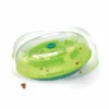 Spelreglerna är enkla. Två spelare behövs, du och din hund. Göm torrfoder eller godis och låt din hund kämpa och leta med nos och tass för att komma åt dem. Du kan hjälpa din hund på traven genom att låta den titta på när du fyller aktiveringsleksaken med torrfoder eller godis och lämna luckorna lite på glänt. Om hunden upplever frustration och inte verkar förstå, backa tillbaka och gör det lättare igen. Ha alltid din hund under uppsikt vid lek med leksaker eller aktiveringsleksaker. Undvik att hunden tuggar på leksaken. 29 x 19 cm.