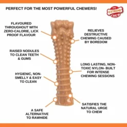 Denna kraftiga hundleksak är tillverkad av tålig och giftfri nylon som berikats med en härlig smak av bacon! Leksaken är självklart helt kalorifri men smaken av bacon sitter kvar länge och lockar hunden till en massa gnagande!