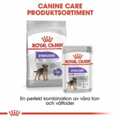 Royal Canin Mini Sterilised är ett hundfoder för kastrerade hundar som väger upp till 10 kg och är äldre än 10 månader. Royal Canin Mini Sterilised har ett näringsinnehåll som är speciellt anpassat för kastrerade hundar innehåller ämnen som underlättar fettförbränningen. Hundfodrets bitar har en form som stimulerar den kastrerade hunden till att äta långsamt, och ökar mättnadskänslan mellan måltiderna. Royal Canin Mini Sterilised innehåller även en optimal balans av omega 3 och omega 6 för att stärka den kastrerade hundens hud och päls.